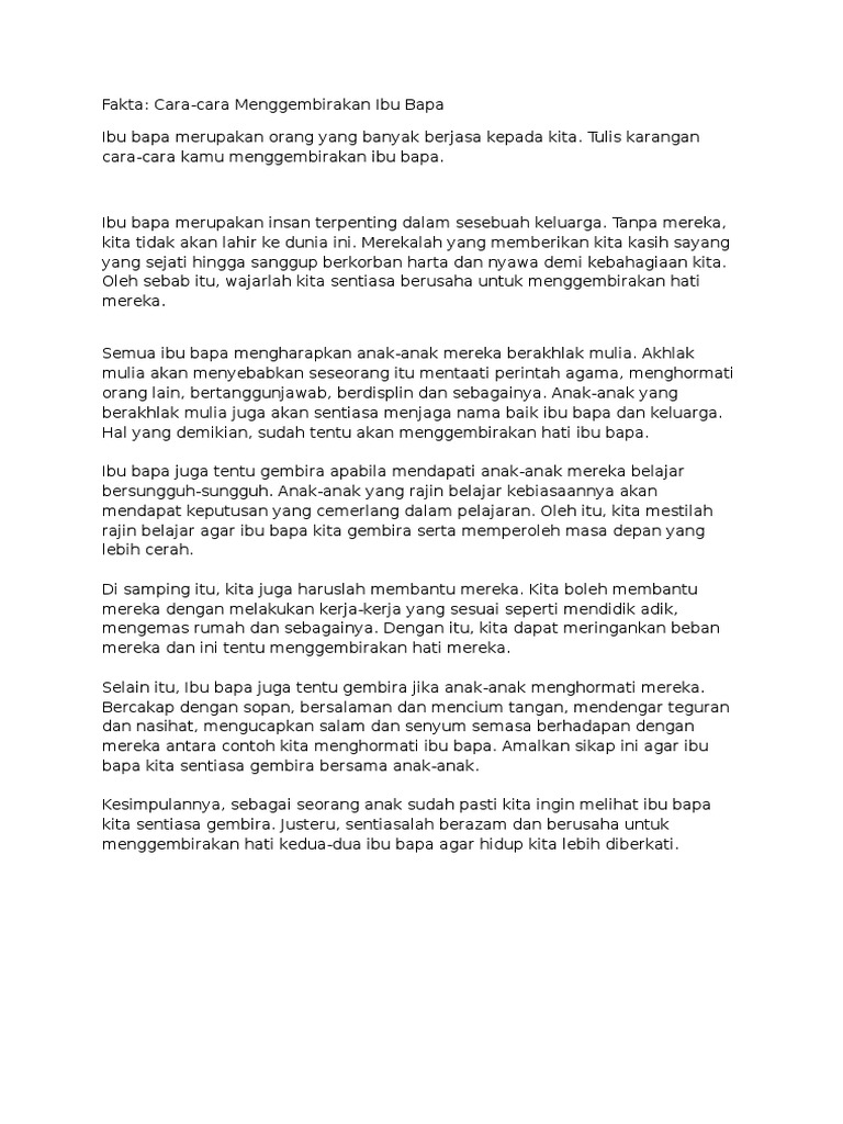 Contoh Contoh Karangan Sekolah Rendah Fakta Cara Cara Menggembirakan Ibubapa Pdf